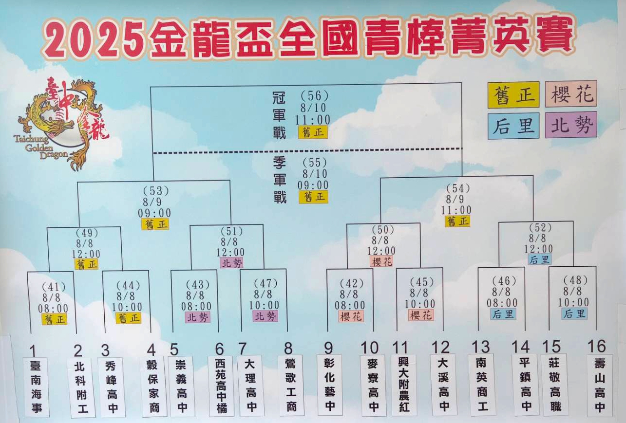 2025金龍盃全國青棒菁英賽 16強抽籤結果